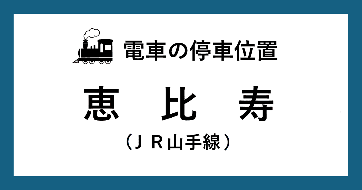 JR恵比寿(えびす)駅の山手線1番線ホーム(外回り:新宿方面)、2番線ホーム(内回り:品川方面)から、乗り換えや改札口、出口への移動に便利な階段やエスカレーター・エレベーターに近い車両の停車位置(乗車位置)を、号車表示でご案内。