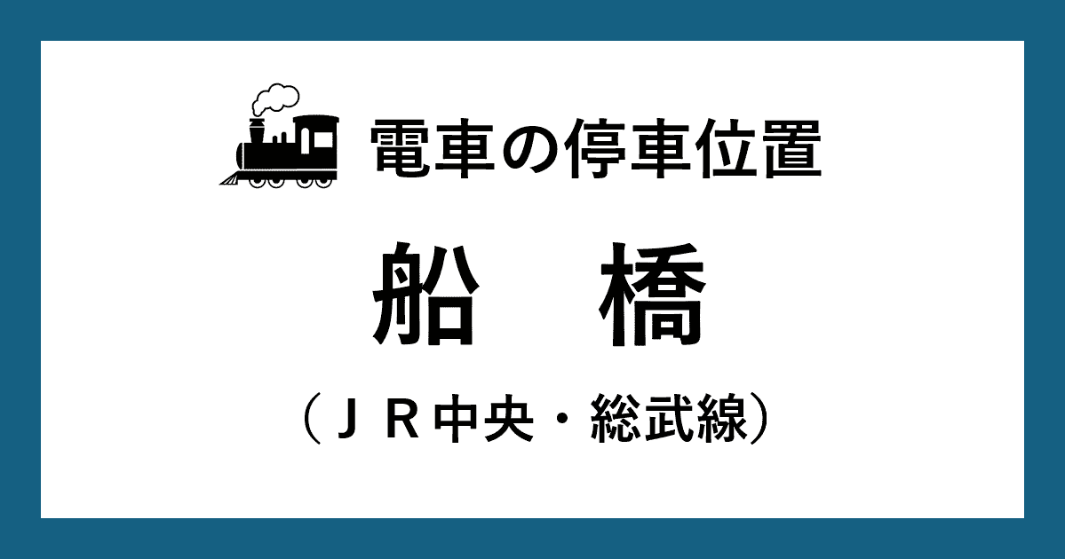 JR船橋(ふなばし)駅の中央・総武線1番線ホーム(西行:三鷹方面)、2番線ホーム(東行:千葉方面)から、乗り換えや改札口、出口への移動に便利な階段やエスカレーター・エレベーターに近い車両の停車位置(乗車位置)を、号車表示でご案内。