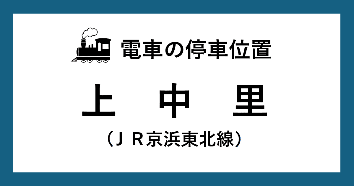 JR上中里(かみなかざと)駅の京浜東北線1番線ホーム(北行:大宮方面)、2番線ホーム(南行:東京・横浜方面)から、改札口、出口への移動に便利な階段やエスカレーター・エレベーターに近い車両の停車位置(乗車位置)を、号車表示でご案内。