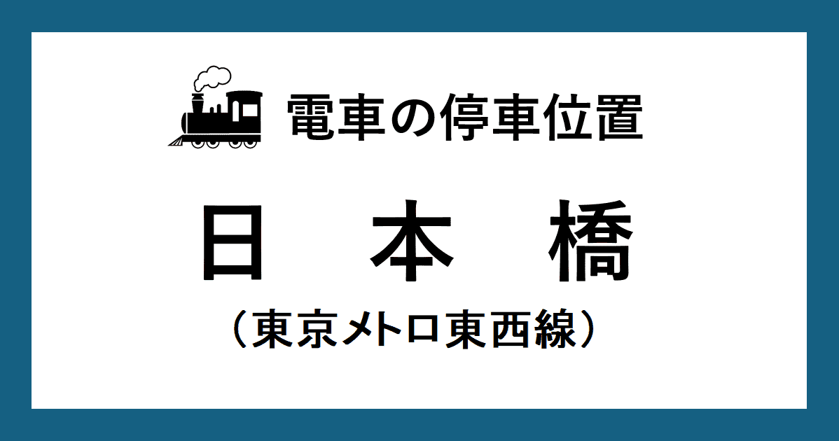 日本橋(にほんばし)駅の東西線3番線ホーム(西船橋方面)・4番線ホーム(中野方面)から、乗り換えや改札口、出口への移動に便利なエレベーターやエスカレーター・階段に近い車両の停車位置(乗車位置)を、号車表示でご案内。
