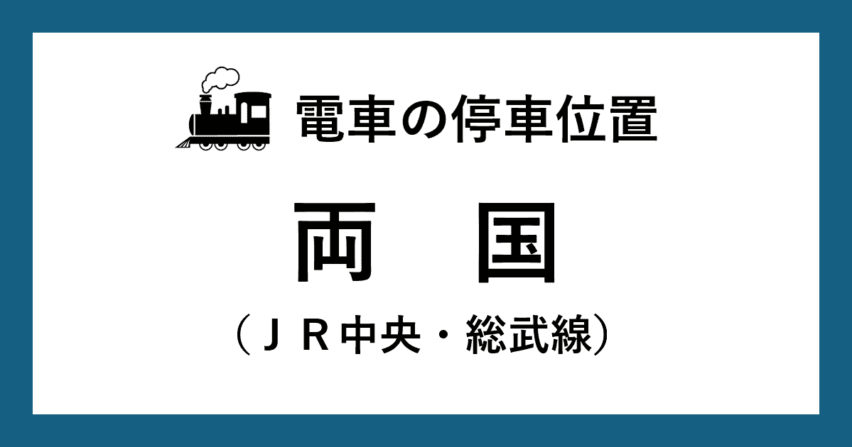 JR両国(りょうごく)駅の中央・総武線1番線ホーム(西行:三鷹方面)、2番線ホーム(東行:千葉方面)から、乗り換えや改札口、出口への移動に便利な階段やエスカレーター・エレベーターに近い車両の停車位置(乗車位置)を、号車表示でご案内。