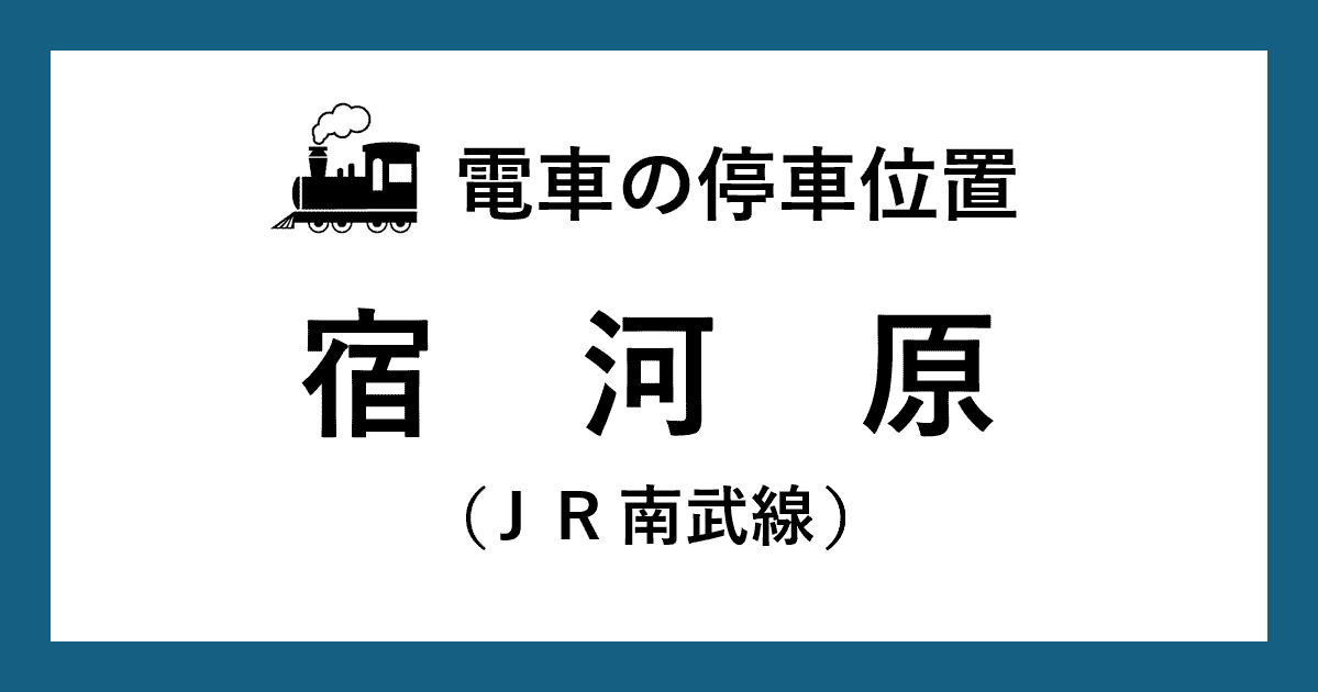 JR宿河原(しゅくがわら)駅の1番線ホーム(下り:立川方面)、2番線ホーム(上り:川崎方面)から、改札口、出口への移動に便利なエレベーターや階段に近い車両の停車位置(乗車位置)を、号車表示でご案内。