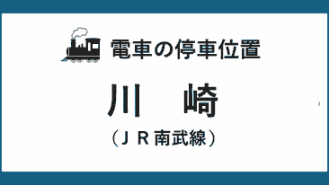JR川崎(かわさき)駅の南武線5・6番線ホーム(当駅止まり)から、乗り換えや改札口、出口への移動に便利な階段やエスカレーター・エレベーターに近いの車両の停車位置(乗車位置)を、号車表示でご案内。停車位置(号車とドアの位置)詳細駅ナンバリング...