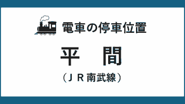 駅ホーム停車位置 【JR平間駅】ホームの階段・エレベーターに近い停車位置 JR平間(ひらま)駅の南武線1番線ホーム(上り:川崎方面)、2番線ホーム(下り:立川方面)から、改札口、出口への移動に便利な階段やエレベーターに近い車両の停車位置(乗車位置)を、号車表示でご案内。停車位置(号車とドアの位置)詳細駅番号(ナン... 駅ホーム停車位置