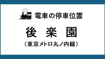 駅ホーム停車位置 【後楽園駅】丸ノ内線ホームの改札口・階段・エスカレーター・エレベーターに近い停車位置 後楽園(こうらくえん)駅の東京メトロ丸ノ内線1番線ホーム(荻窪方面)・2番線ホーム(池袋方面)から、乗り換えや改札口、出口への移動に便利な階段やエスカレーター・エレベーターに近い車両の停車位置(乗車位置)を、号車表示でご案内。停車位置詳細駅... 駅ホーム停車位置