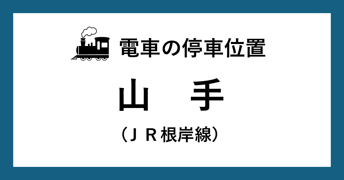 JR山手(やまて)駅の京浜東北線・根岸線1番線ホーム(南行:磯子・大船方面)、2番線ホーム(北行:大宮・八王子方面)から、改札口、出口への移動に便利な階段やエレベーターに近い車両の停車位置(乗車位置)を、号車表示でご案内。